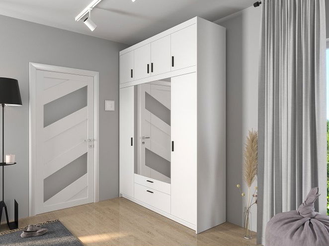Šatní skříň se zrcadlem Elanor IV (bílá)