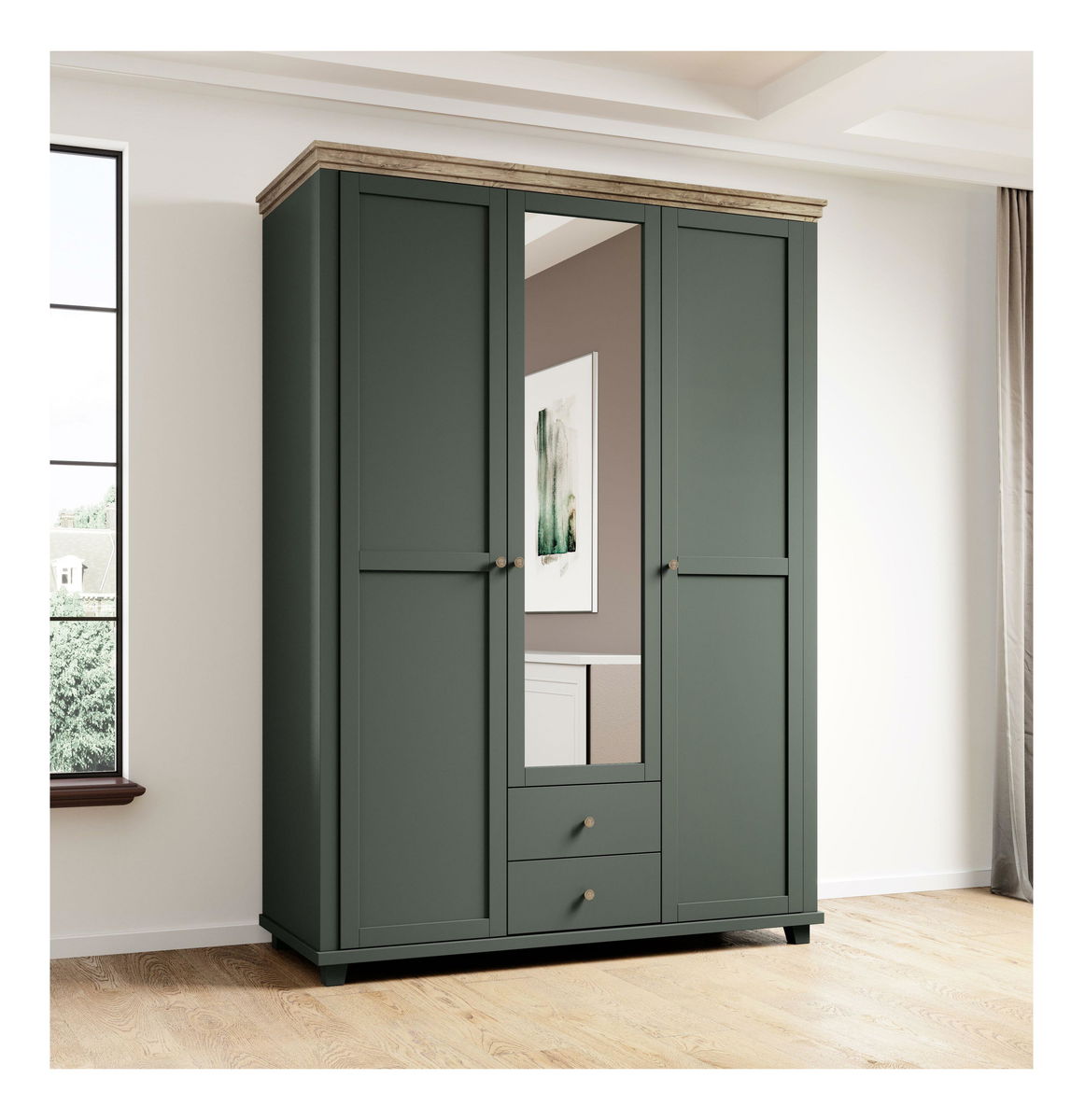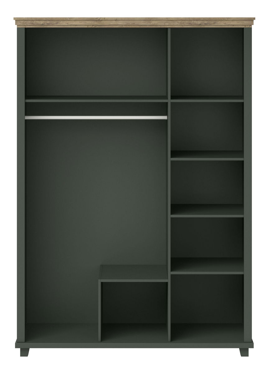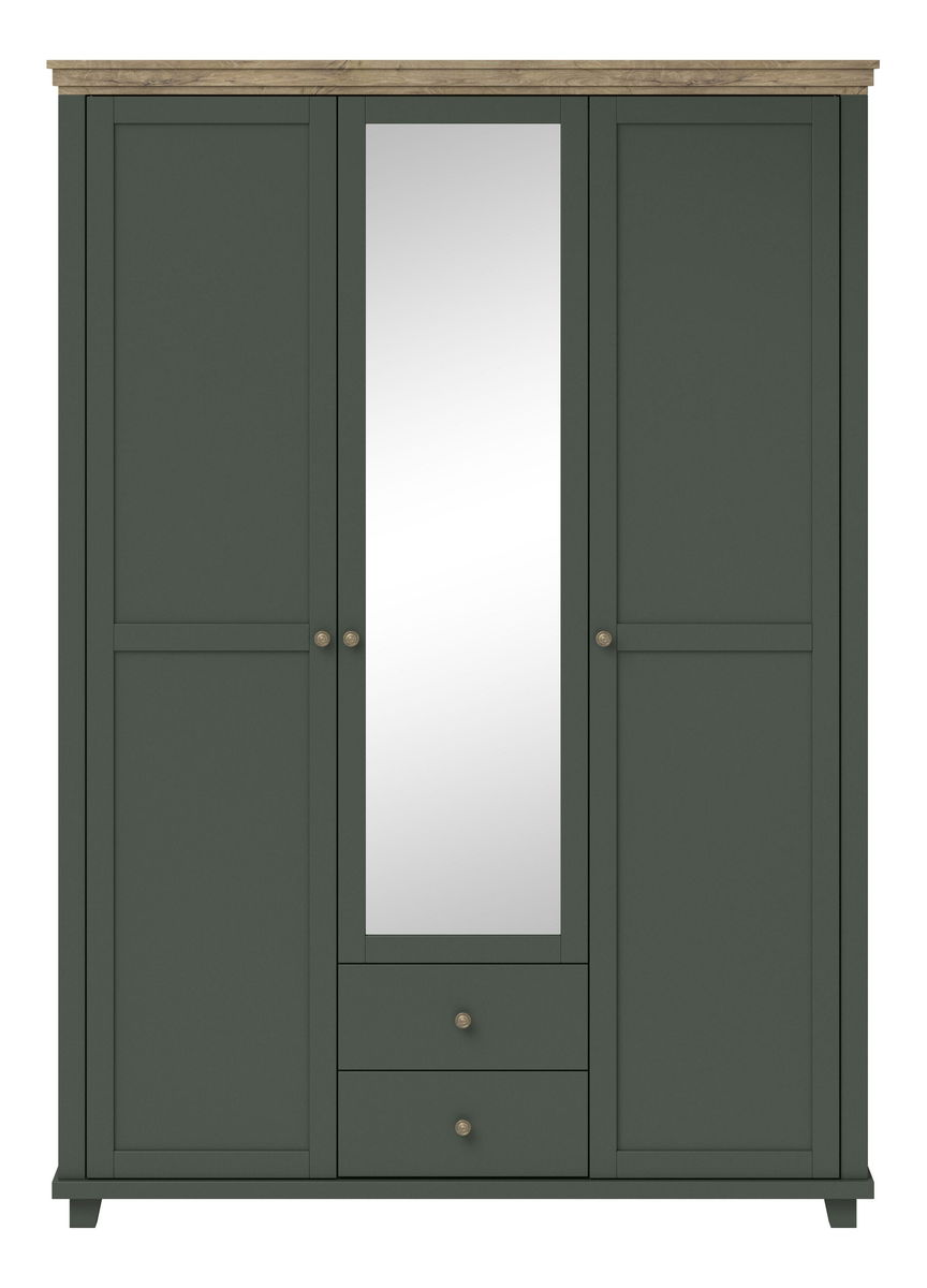 Šatní skříň se zrcadlem Elvina S Typ 19 (tmavě zelená + dub lefkas)
