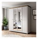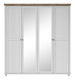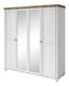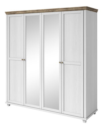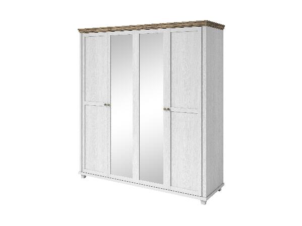Prostorná čtyřdveřová šatní skříň ze série Elvina ve spojení rustikální vznešenost a skandinávského minimalismu. Na středních dvířkách se nacházejí dvě zrcadla, která opticky zvětší prostor. Dopřejte svému oblečení volnost a pořádek. V pravé části jsou prakticky umístěny police a v levé věšáková tyč, nad kterou se také nachází jedna police. Vhodná je do ložnice i chodby.