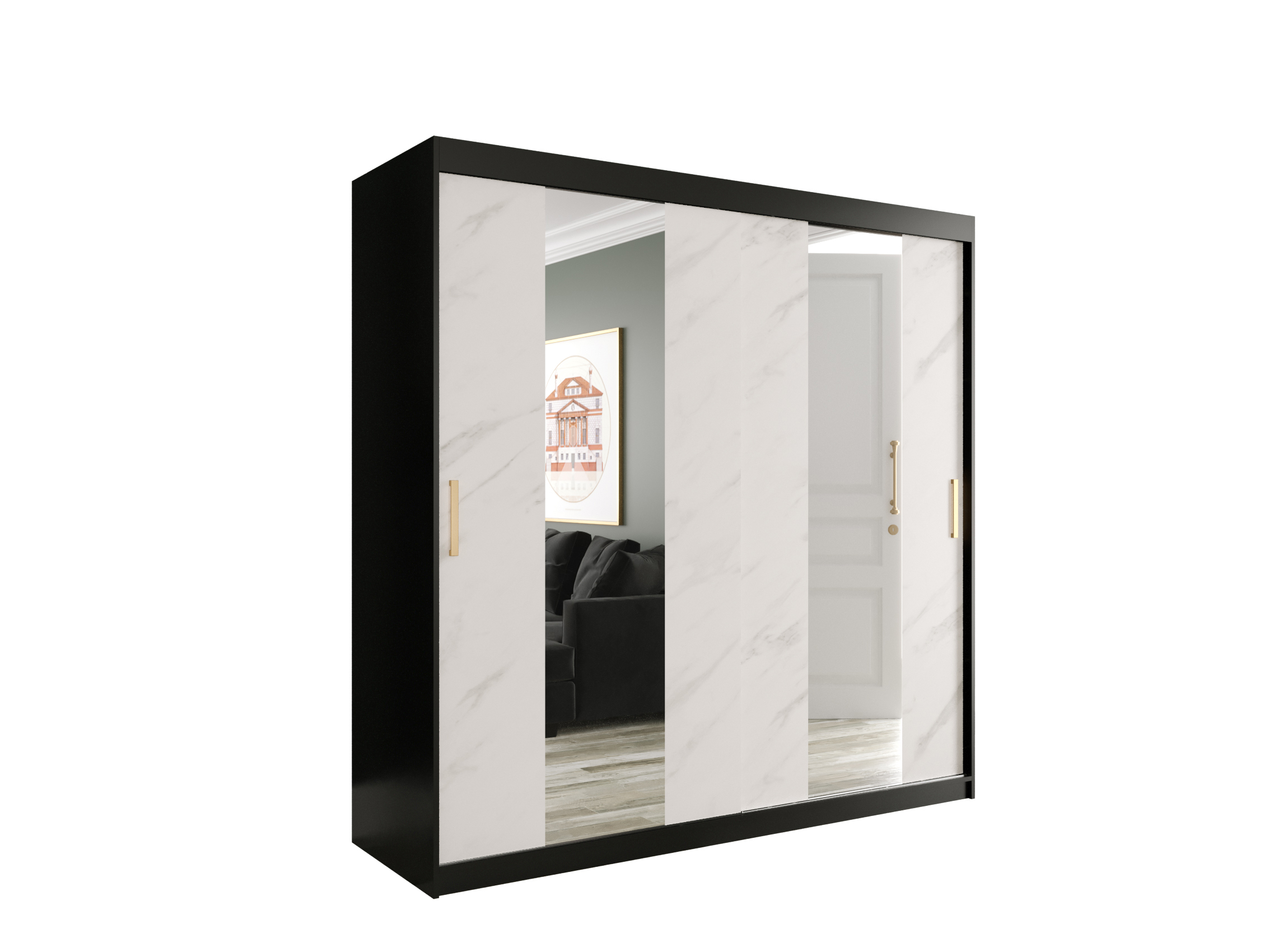 ZobrazitSkříň se zrcadlem je ideální volbou pro ty, kteří hledají pohodlí a styl. Šatní skříň se zrcadlem na jedné straně Sahara 200 III je kus nábytku, který uspokojí i ty nejnáročnější uživatele. Vhodné rozměry, promyšlená forma a posuvné dveře do šatníku zaručují spokojenost s každodenním používáním. Jedno z čel šatníku je zdobeno zrcadlovou tabulí, která zdůrazní kvality interiéru zařízeného v moderním, skandinávském a industriálním stylu. Uspořádání polic uvnitř nábytku pomáhá ukládat nejen oblečení – můžete také snadno umístit krabice s botami, kufrem a dokonce i dodatečným ložním prádlem. Posuvná skříň se zrcadlem je vyrobena z pevných komponentů, abyste se mohli dlouho těšit z odolnosti a spolehlivosti nábytku. Okraje dvířek jsou navíc zakončeny hliníkovými úchyty, které zabraňují prohýbání dvířek. Rozměry: šířka: 200 cm, výška: 200 cm, hloubka: 62 cm Provedení: laminovaná dřevotříska 16 mm, okraje zakončené PVC dýhou, systém posuvných dveří - hliníková ložiska, hrany dveří zakončené hliníkovými úchyty, které zabraňují prohýbání dveří, 16 mm deska, druhé - 3 mm silné zrcadlo nalepené na 12 mm desce (deska, na které je zrcadlo nalepeno, není shodná s barvou šatníku), LED osvětlení jako doplňková možnost (ve verzi RGB je součástí balení dálkové ovládání) Záruka: 24 měsíců