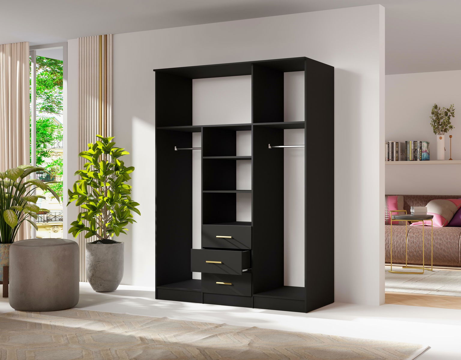Šatní skříň Selforta 3D (černá) (se zrcadlem)