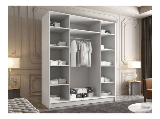 Šatní skříň je ideální volbou pro ty, kteří hledají pohodlí a styl. Prostorná šatní skříň Sozilo I je skvělým základem pro uložení oblečení, doplňků a tašek. Prostorný interiér nábytku nabízí množství polic ak dispozici je i samostatný prostor pro zavěšení ramínek. Dobře organizovaná čtyřdveřová šatní skříň Sozilo I usnadňuje rozkládání oblečení a podporuje i ochranu oblečení před nadměrným pokrčením. Módní vzhled šatní skříně podtrhují dlouhé okrajové úchyty. Jejich minimalismus dokonale doplňuje jednoduchý tvar – podtrhuje skromnou eleganci celého nábytku. V takovém elegantním vzhledu vypadá šatní skříň skvěle i v pokoji pro hosty. Rozměry: šířka: 200 cm, výška: 215 cm, hloubka: 58 cm Provedení: tloušťka laminované dřevotřísky 16 mm, hrany upravené PVC dýhou, zadní stěna z dřevovláknité desky, kovové úchyty, rovné závěsy s tichým zavíráním, interiér s Záruka: 24 měsíců