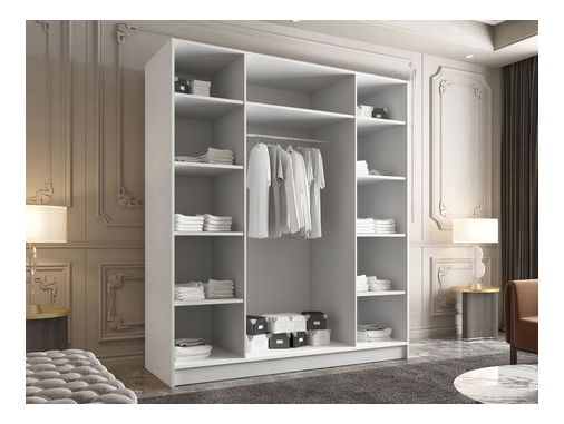 ZobrazitMinimalistická šatní skříň Sezalos II je senzační volbou do ložnice, šatny nebo předsíně. Díky své funkčnosti dokonale zapadne do interiéru každé místnosti a v průběhu let bude držet krok s měnícími se potřebami. Zrcadlová šatní skříň nabízí prostorné police a robustní tyč na šaty. Poskytuje dokonalý prostor pro všechny položky vašeho šatníku – od každodenních šatů a večerních outfitů až po boty a doplňky. Šatní skříň o šířce 200 cm prakticky využívá dostupný prostor a vytváří stylový a uklizený interiér!