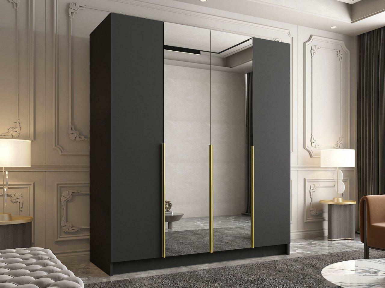Šatní skříň Sezalos II (černá + zlatá) (se zrcadlem)