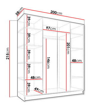 Zrcadlová šatní skříň Sezalos III je kombinací elegance a funkčnosti, která uspokojí i ty nejnáročnější uživatele. Čela dveří byla pokryta zrcadly, která dodají interiéru modernost a opticky ho zvětší. Celý design byl obohacen o módní podlouhlé úchyty, které nábytku dodávají jemnost. Čtyřdveřová šatní skříň Sezalos nabízí dostatek úložného prostoru. Je vybavena řadou polic, které vám umožní uspořádat oblečení, obuv a další doplňky. Kromě toho má také praktickou tyč, která je ideální pro odkládání šatů, košil a obleků.