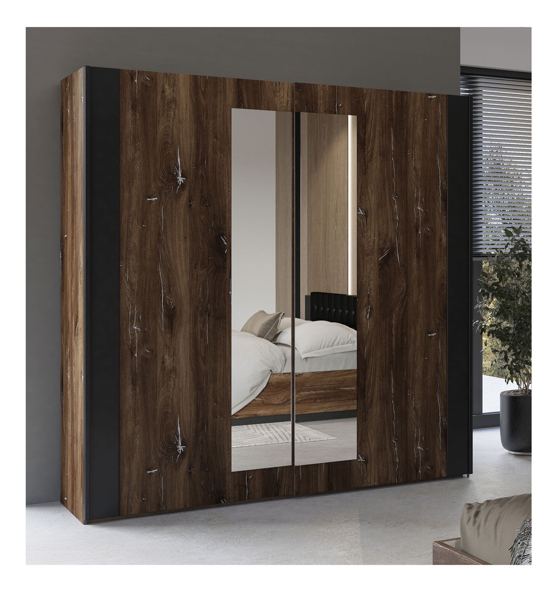 Šatní skříň Signat Typ 18 (černá + dub flagstaff + stříbrná)