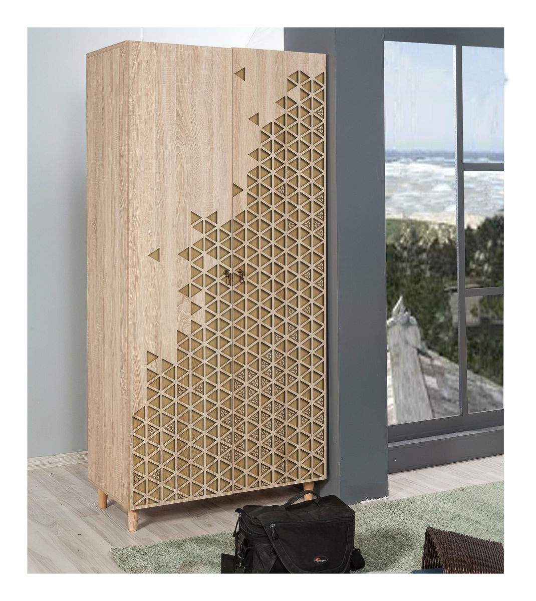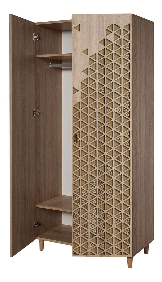 tloušťka: 18 mm, habrové nohy, kovové rukojeti, uv nátěr, šířka: 90 cm, výška: 192 cm, hloubka: 52 cm, výška horní police: 25 cm, výška spodní police: 25 cm, výška nohy: 10 cm
