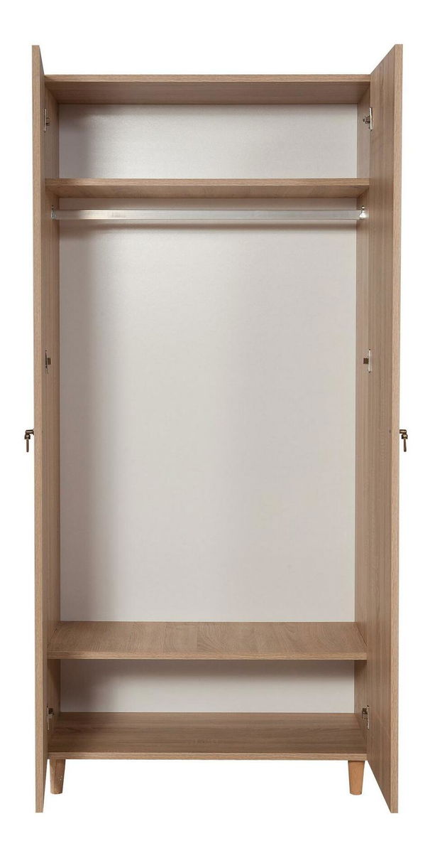 tloušťka: 18 mm, habrové nohy, kovové rukojeti, uv nátěr, šířka: 90 cm, výška: 192 cm, hloubka: 52 cm, výška horní police: 25 cm, výška spodní police: 25 cm, výška nohy: 10 cm