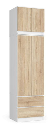 Šatní skříň Slots (bílá + dub sonoma) (s nástavbou)