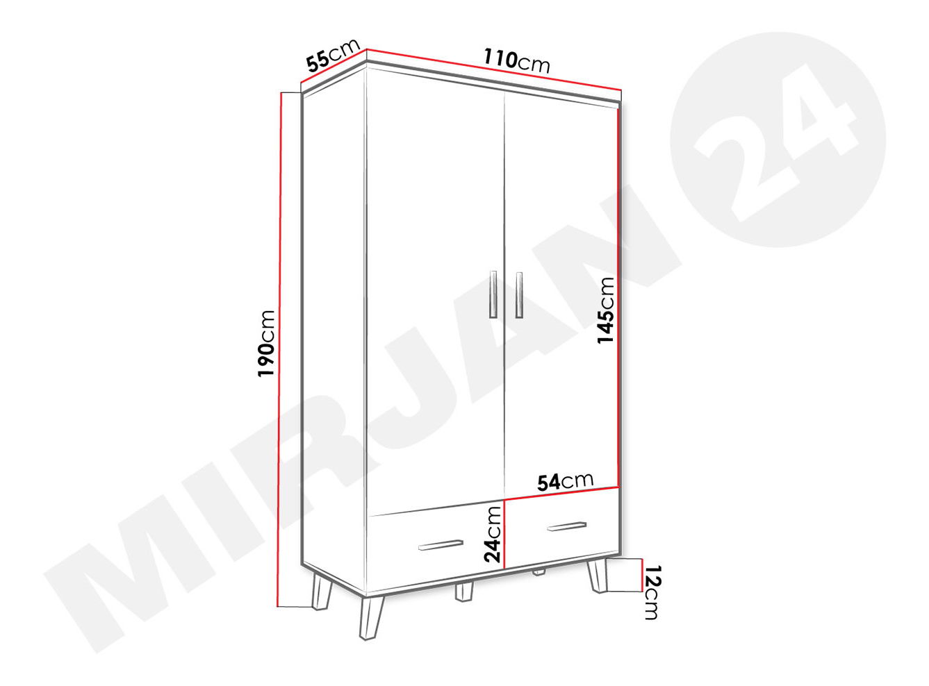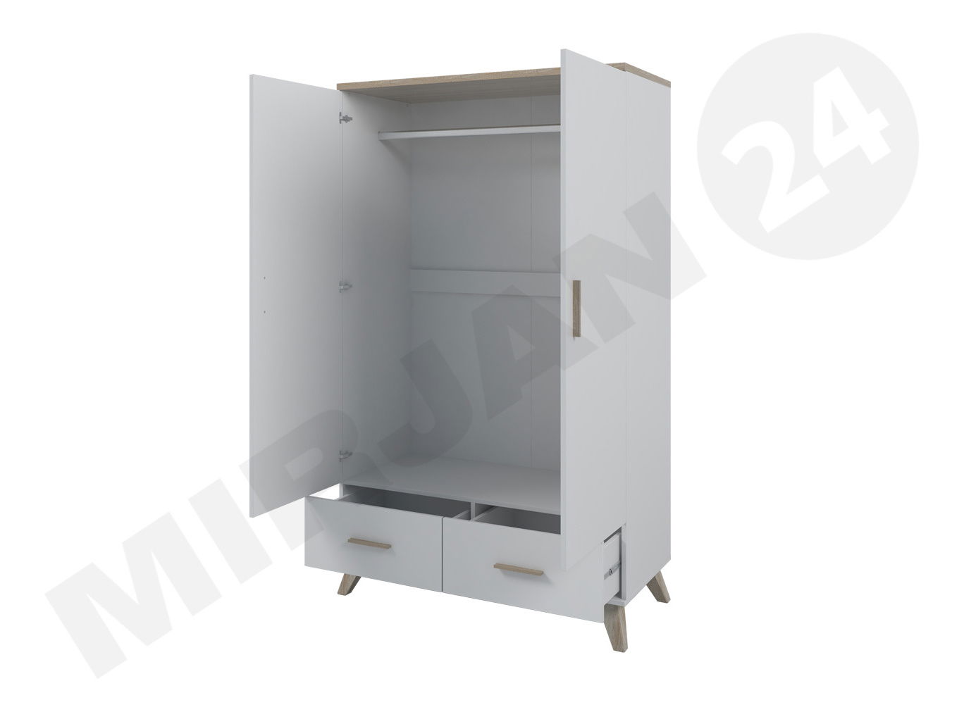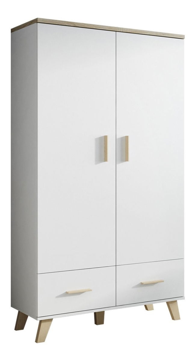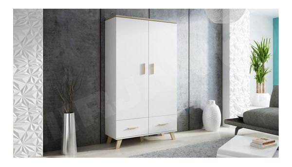 ZobrazitSkříň je ideální volbou pro ty, kteří hledají pohodlí a styl. Šatní skříň Sanna je velmi zajímavým řešením do ložnice, předsíně nebo obývacího pokoje. Originální vzhled šatníku ovlivňují použité nohy, které dokonale ladí s loftem a skandinávským stylem. Celek doplňují módní barvy a dřevěné, minimalistické úchyty. Rozměry šatní skříně jsou šířka 110 cm a hloubka 55 cm. Celková výška šatníku je 190 cm. Kromě toho je interiér šatníku rozdělen na dvě části. V horní části je kolejnička na ramínka, díky které můžete uložit svrchní oblečení, dlouhé šaty nebo oblek. Spodní část šatní skříně tvoří prostorné zásuvky. Rozměry: šířka: 110 cm, výška: 190 cm, hloubka: 55 cm Vyrobeno: korpus a fronta: 16 mm matná dřevotříska, vrchní deska: 25 mm matná dřevotříska, PVC dýha, rovné panty, kuličková vedení, tyč na šaty uvnitř šatů barvě wotan - plast Záruční doba: 24 měsíců