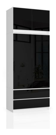 Šatní skříň Submarino (bílá + černý lesk) (s nástavbou)