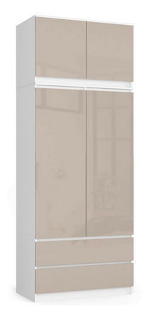 Šatní skříň Submarino (bílá + lesklé cappuccino) (s nástavbou)