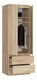 Šatní skříň Suman je vyrobena ze 16 mm laminované desky odolné vůči oděru. Okraje jsou pokryty ABS hranami. Čela zásuvek jsou také vyrobena z laminované desky. Uvnitř dvířek je police a tyč na šaty. Zásuvky se posouvají na kovových válečkových vedeních. Dostupná iv jiných barevných provedeních.