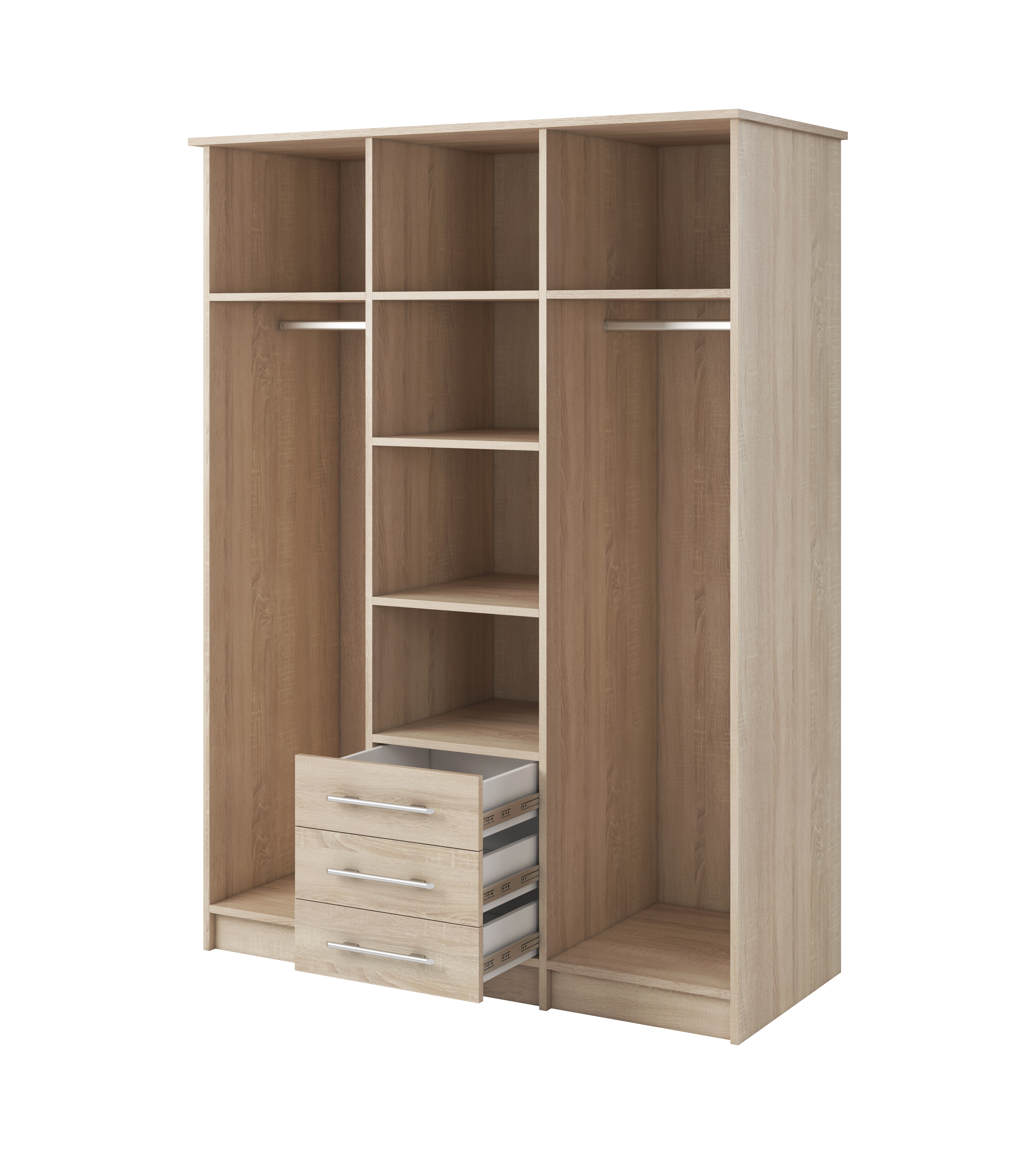 Šatní skříň Svalga 3D (dub sonoma) je praktický a moderní nábytek pro váš domov. S výškou 210 cm a hloubkou 64 cm poskytuje dostatek místa pro vaše věci. Tato skříň je vyrobena z kvalitní laminované dřevotřísky (16 mm), která je odolná proti poškrábání a praskání. Hrany jsou opatřeny ABS ochranou, která chrání před poškozením. Úchyty jsou vyrobeny z PCV materiálu, který se pěkně hodí k dub sonoma barvě. Tato skříň disponuje prostorným vnitřním prostorem s více policemi a závěsnými tyčemi, abyste snadno uspořádali své oblečení a doplňky. Svalga 3D skříň (dub sonoma) je skvělým doplňkem do vašeho domova.