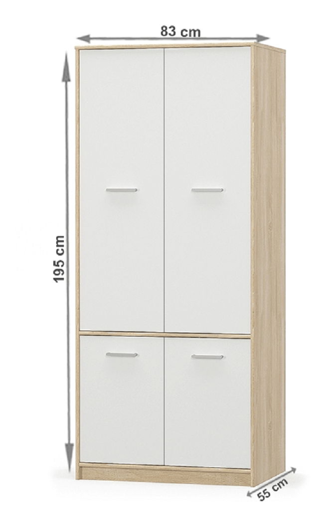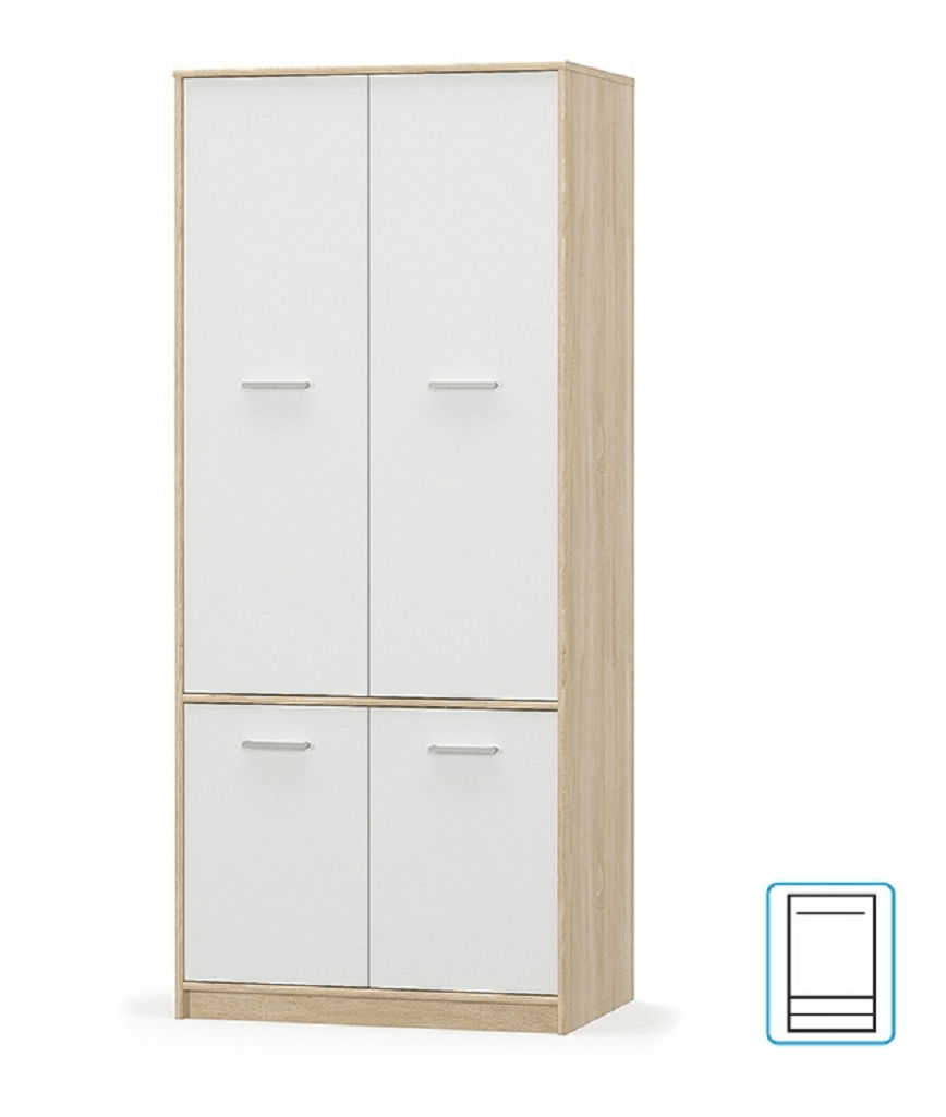 Šatní skříň Thornham 4D v bílém provedení o výšce 195 cm a hloubce 55 cm je ideálním řešením pro Vaše malé modely. Skříň má jednoduchý a moderní design, který se snadno přizpůsobí každému interiéru. Tato skříň poskytuje dostatek úložného prostoru pro oblečení a jiné doplňky vašich dětí. Barevné provedení v dub sonoma spolu s bílou barvou skříně vytváří dokonalý kontrast, který přiláká pozornost každého. Materiál, ze kterého je skříň vyrobena, je DTD laminovaná, která zaručuje kvalitu a dlouhou životnost produktu. Šatní skříň Thornham 4D je skvělou volbou pro každého, kdo hledá praktické a krásné řešení pro své děti.
