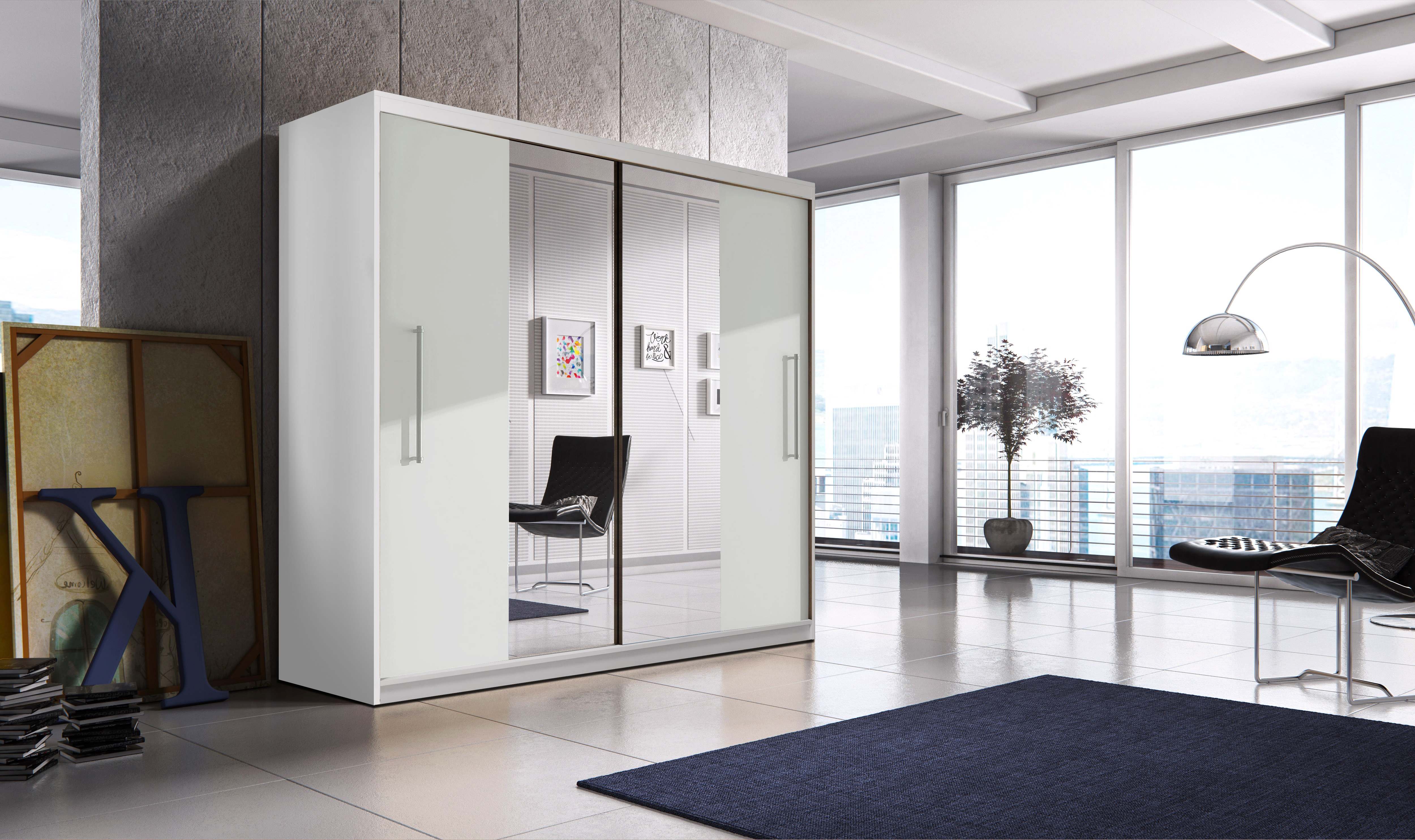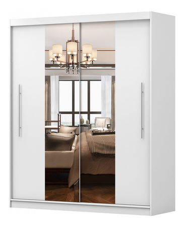 Šatní skříň Thovan (bílá + bílá + zrcadlo)