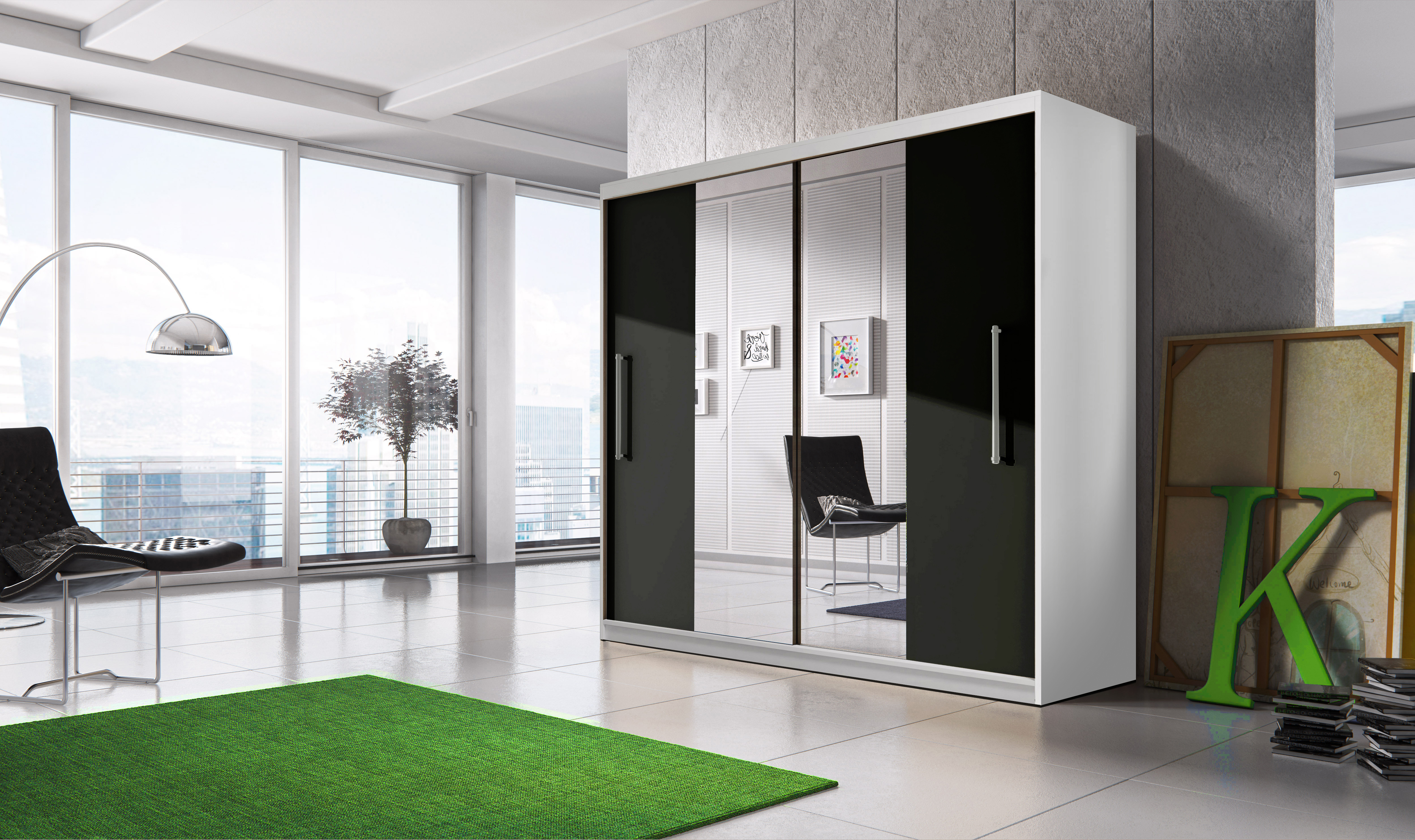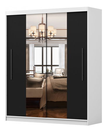 Šatní skříň Thovan (bílá + černá + zrcadlo)