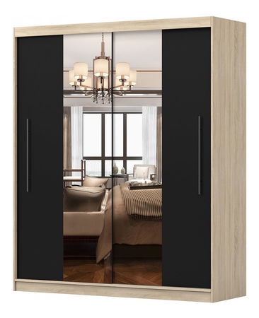 Šatní skříň Thovan (dub sonoma + černá + zrcadlo)