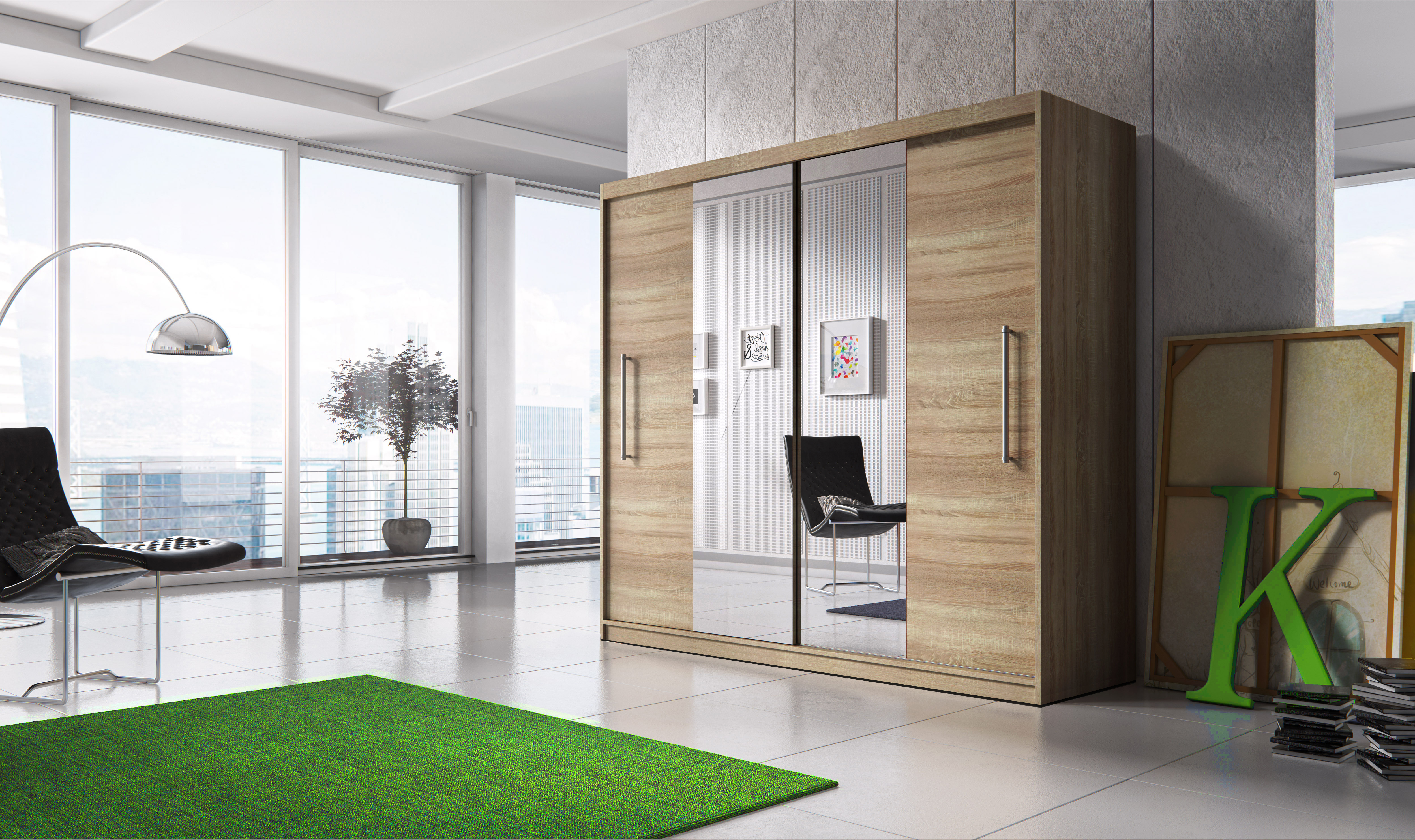 Šatní skříň Thovan (dub sonoma + dub sonoma + zrcadlo)