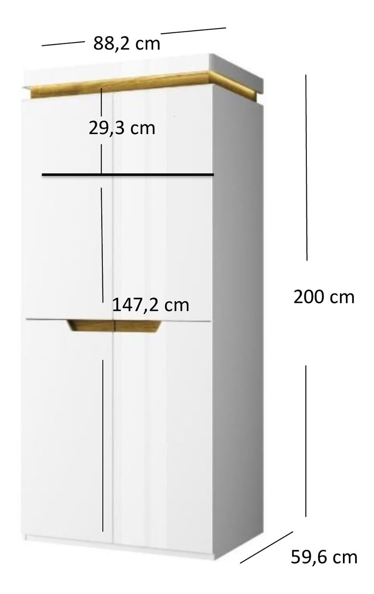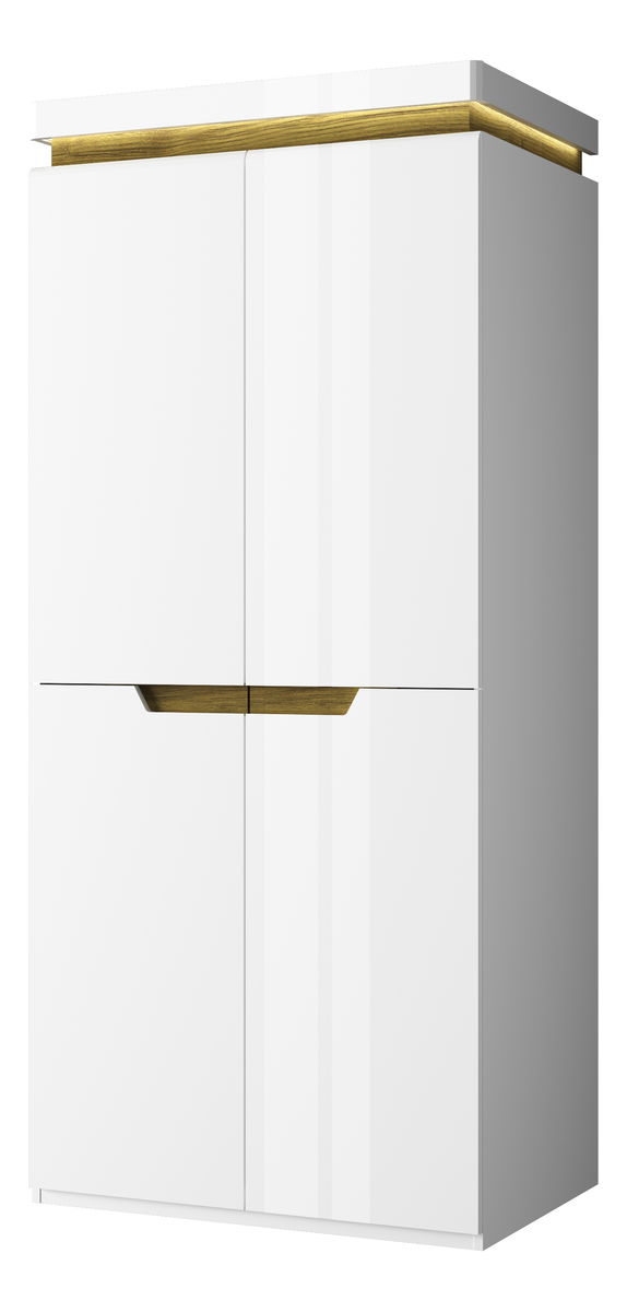 Šatní skříň Tiera (bílá lesklá + dub navarre)
