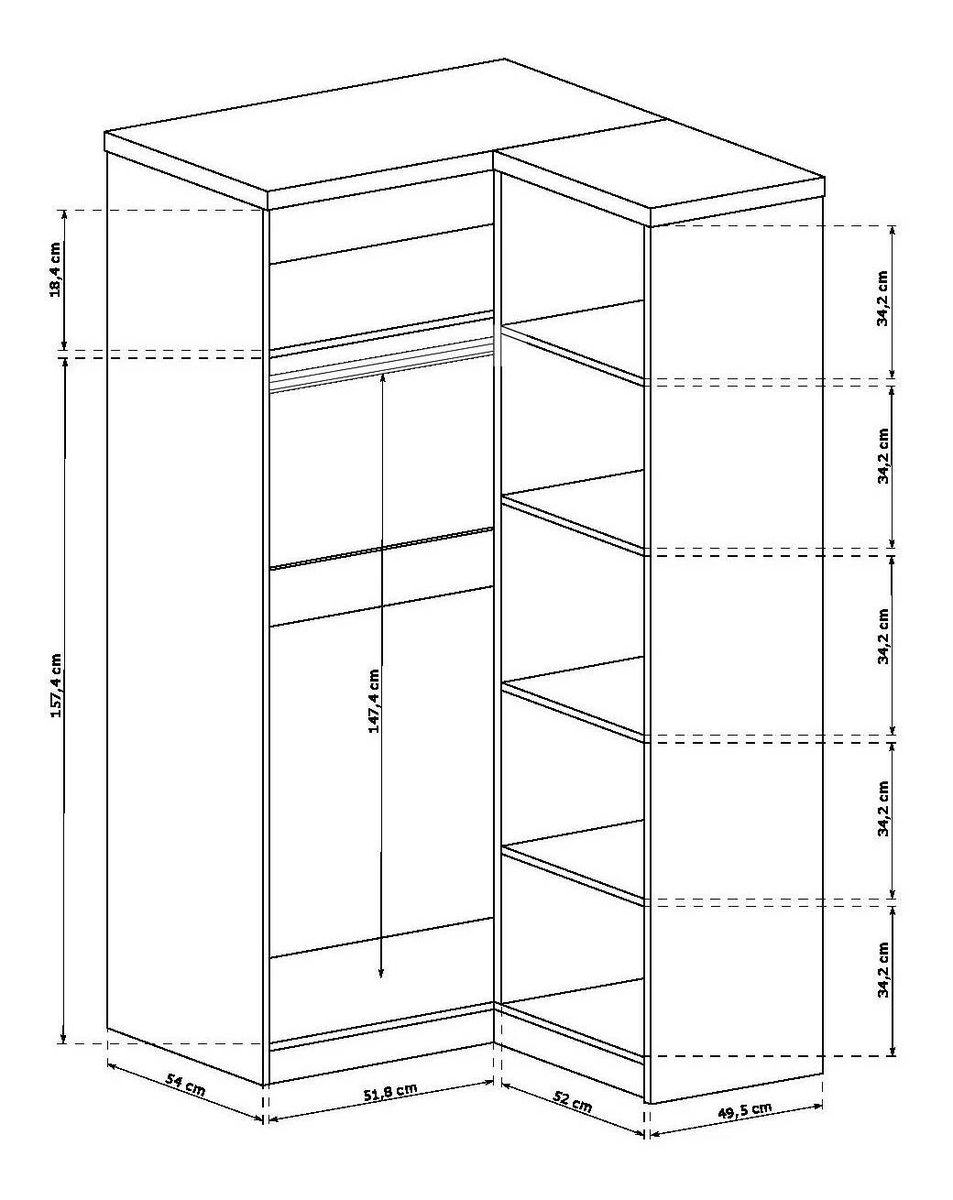 Šatní skříň Titanus 25 (dub lefkas) o výšce 190 cm, šířce 110 cm a hloubce 57 cm je ideálním řešením pro vaše úložné potřeby. Tato velká rohová skříň má čtyři police a šatní tyč o délce 89 cm, což vám poskytne dostatek místa pro uspořádání vašich věcí. Navíc nad ní se nachází funkční, přídavná police, která umožňuje snazší pořadí mezi věcmi. Pokud potřebujete, je také k dispozici obrácená verze šatníku. Šatní skříň Titanus 25 (dub lefkas) je dokonalým doplňkem pro váš šatník a interiér.