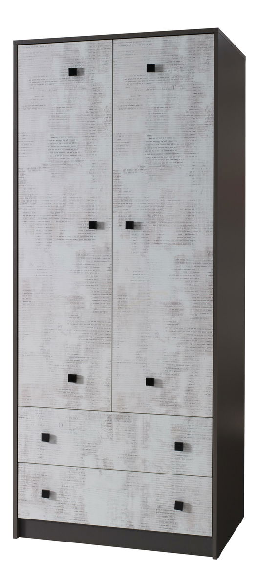Šatní skříň Torton T2 o výšce 193 cm a hloubce 58 cm v grafitové barvě as názvem Enigma je praktickým doplňkem každého pokoje. Tato šatní skříň nabízí dostatek úložného prostoru pro vaše oblečení a doplňky. Ve skříni se nachází šatní tyč na zavěšení oblečení a nad ní je police. Ve spodní části se nacházejí dvě zásuvky pro uložení dalších věcí. Šatní skříň má zajímavý design, který zkrášlí jakýkoli pokoj. Je vyrobena z dřevotřísky o tloušťce 16 mm, a nožičky a úchyty jsou z plastu. S touto šatní skříní budete mít vaše oblečení vždy pořádně uloženo a vše bude na svém místě.