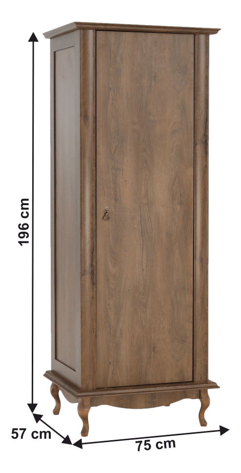 Šatní skříň Valiara DA3 (dub lefkas) vysoká 196 cm a hluboká 57 cm je ideální volbou pro ty, kteří hledají šatní skříň s dostatkem místa a moderním designem. Vyrobena je z kvalitní DTD laminované desky s ABS hranami a má barvu dub lefka. jsou 75x57x196 cm a tloušťka materiálu je 30 mm. Výška spodního prostoru od podlahy je 15 cm. moderní a elegantní vzhled.