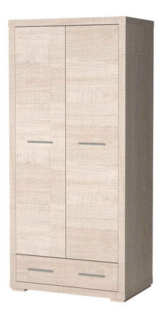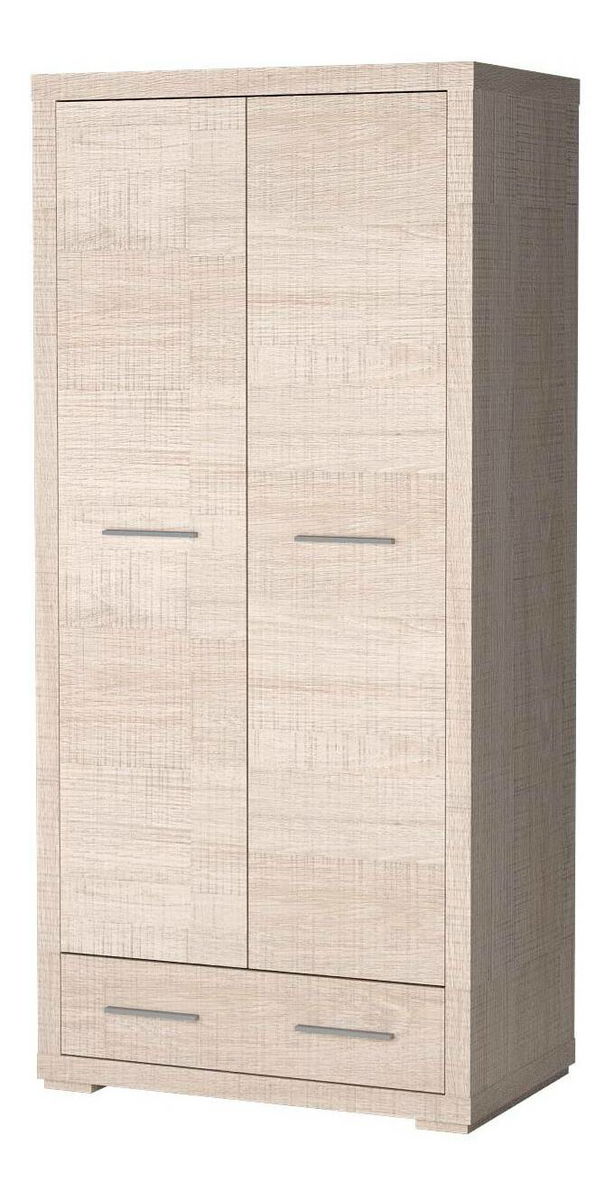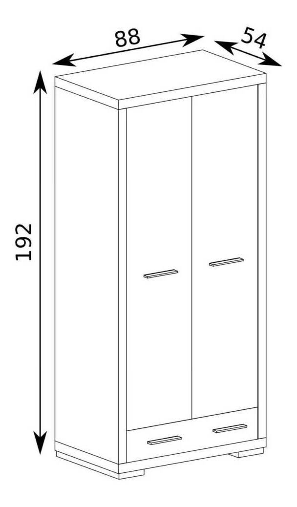 ZobrazitDvoudveřová šatní skříň z kolekce Vega. Ve středu má tyč, která umožňuje vyplnit dostupný prostor nábytku. Níže je zásuvka, do které se vejde spousta oblečení, dokumentů nebo jiného příslušenství. Kovové úchyty splývají s celým kusem nábytku a dokonale zvýrazňují jeho pevný charakter. Hodí se do obývacího pokoje, ložnice i pracovny.