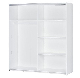 Šatní skříň z moderní modelové řady Venecia oživí Vaši ložnici nebo jiný prostor v bytě. Skříň má bezúchytový systém s posuvnými dveřmi. Korpus a dvířka jsou vyrobeny z kvalitního LTD bílé barvy s pruhem v barvě dřeva dub sonoma. V úložném prostoru se nacházejí dvě věšákové tyče a nad nimi je umístěna polička. Ke skříni si můžete přiobjednat dvě poličky a tichý dojezd dveří.