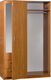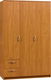 Moderní třídílná (třídveřová) šatní skříň s dostatkem úložného prostoru. Uvnitř se na pravé straně (za dvěma dveřmi) nachází pod poličkou věšáková tyč. Levá strana je opatřena v horní části 3 poličkami. Pod dveřmi jsou umisťeny 2 zásuvky. Skříň je vyrobena z laminované dřevotřísky. Provedení buk a olše.