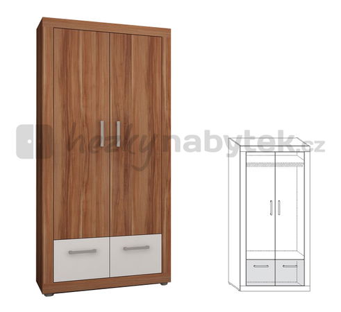 Šatní skříň nabízí množství úložného prostoru v podobě věšákové tyče, nad kterou je umístěna polička. V dolní části je skříňka se dvěma dvířky. Vyrábí se až v osmi barevných provedeních, z nichž si můžete vybrat ten nejvhodnější k odstínu Vašeho interiéru. Patří do modelové řady Viki a je kombinovatelná s obývací stěnou a regálem. No jistě najde uplatnění i v ostatních prostorech Vašeho bytu jako samostatně stojící skříň.