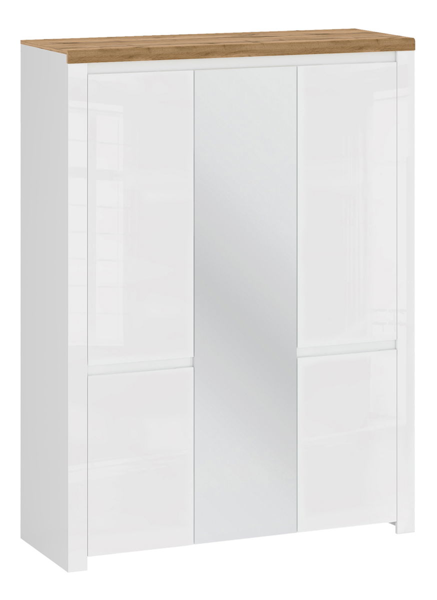 Šatní skříň Vilgi 5D (se zrcadlem) (lesk bílý + dub wotan)