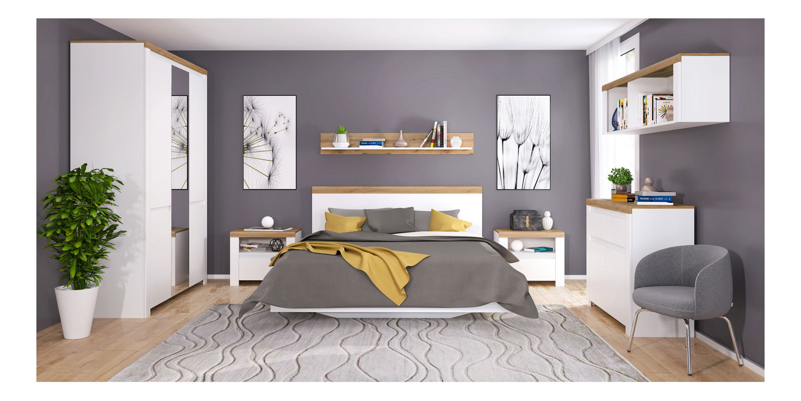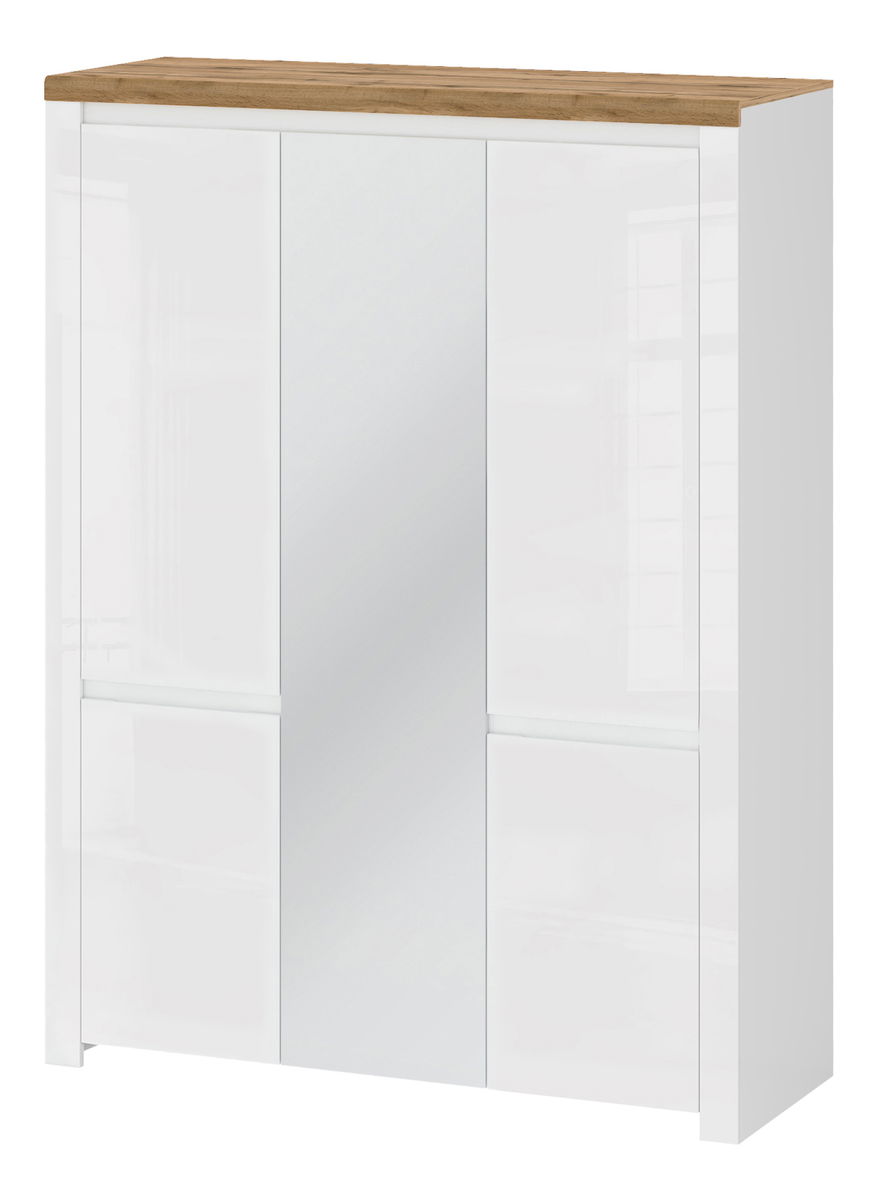 Šatní skříň Vina (bílá lesklá + dub wotan)