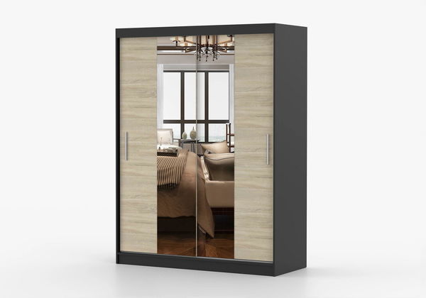 - Šatní skříň Viola 01 (černá + dub sonoma)