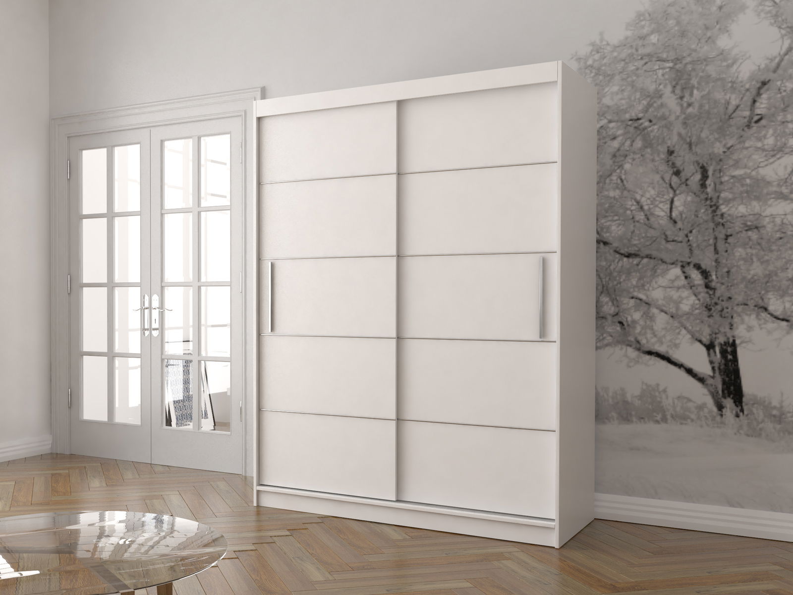 Šatní skříň, vhodná pro moderní domovy, je vyrobena z 16 mm silné dřevotřísky, která je použita jak na vnější, tak na vnitřní stranu. Okraje skříně jsou ošetřeny 0,5 mm silnými ABS hranami pro zvýšenou odolnost a kvalitní vzhled. Skříň obsahuje úchyty z PVC ve svislém tvaru, které jsou stříbrné barvy a přidávají skříni moderní nádech. Úchyty jsou pevně připevněny šroubovým způsobem. Skříň není vybavena zrcadlem, což zvyšuje její univerzálnost v různých typech místností. Uvnitř skříně se nachází jedna podélná tyč na pravé straně, vhodná pro zavěšení oděvů. Celkově skříň nabízí pět poliček, z nichž čtyři jsou umístěny na levé straně a jedna na pravé. Toto rozložení poliček umožňuje efektivní uspořádání a organizaci oděvů a jiných předmětů. Tato šatní skříň je praktickým a esteticky přitažlivým kusem nábytku, který se hodí do každého moderního bytu či domu.