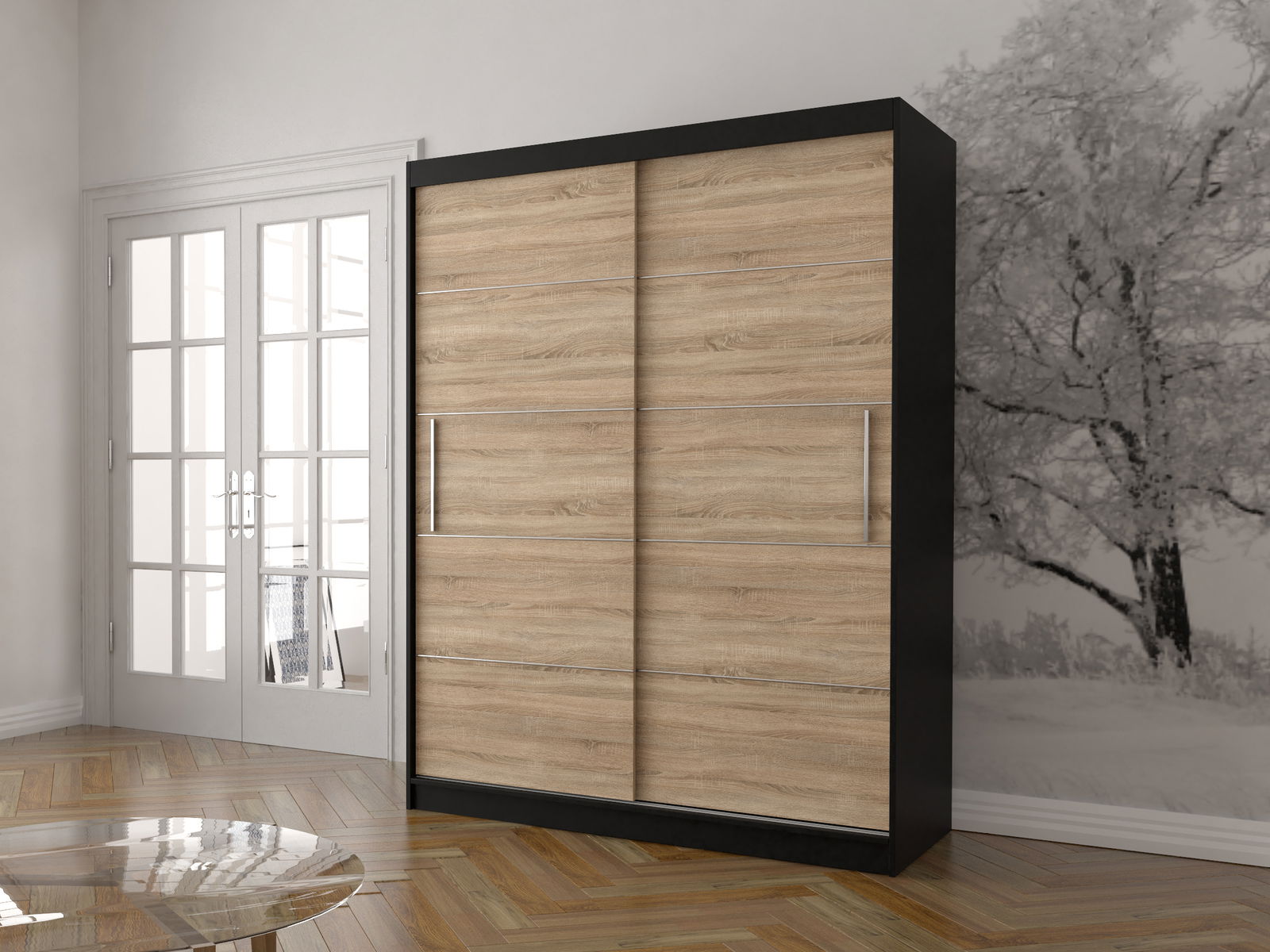 - Šatní skříň Viola 06 (černá + dub sonoma)