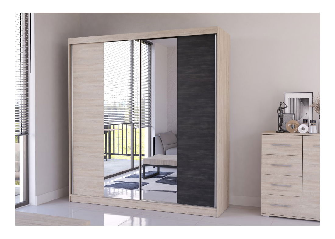 Šatní skříň Wisteria (dub sonoma + borovice černá norská + zrcadlo)