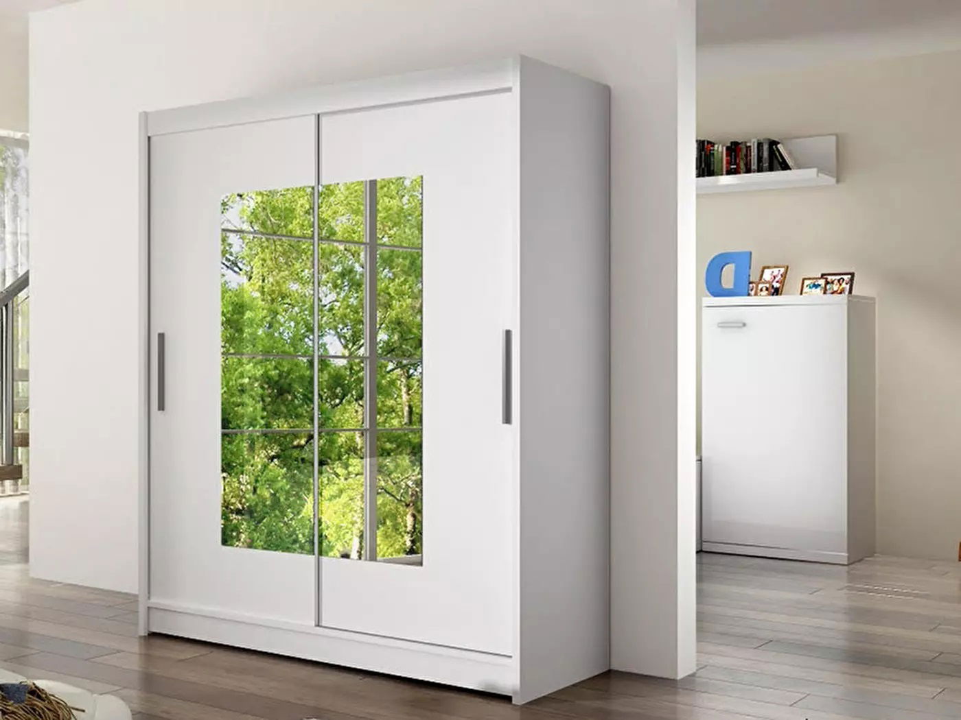 Šatní skříň Westa III se vám určitě zalíbí kvůli modernímu minimalistickému designu a stylovému zrcadlu uprostřed. Oceníte ji i pro velké množství úložného prostoru, který poskytuje. V její levé části se nachází věšáková tyč pro vaše oblečení a v pravé části jsou police. Ve vrchní části šatní skříně se nachází další úložný prostor. Skříň Westa III je v jemném bílém barevném provedení.