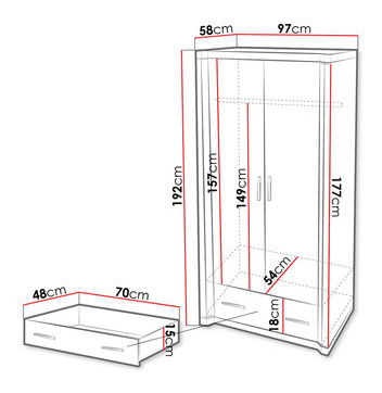ZobrazitŠatní skříň je ideální volbou pro ty, kteří hledají pohodlí a styl. Dvoudveřová šatní skříň Xavier XV-20 je jedním z prvků kolekce s elegantním charakterem. Tento styl nábytku je ovlivněn použitými barvami, které jsou k dispozici ve světlých i tmavých barvách. Kromě toho byl dvoudveřový šatník Xavier XV-20 vybaven funkčními řešeními. V horní části skříně je tyč na ramínka, zatímco v dolní části je prostorná zásuvka. Kvalitní komponenty, zejména laminovaná deska, zajišťují stabilitu a životnost skříňky. Rozměry: šířka: 97 cm, výška: 192 cm, hloubka: 58 cm Materiál: laminovaná deska na deskách zahuštěná na tloušťku 48 mm a frézovaná křivka, boky a fronty vyrobené z laminátové desky 16 mm, boky zdobené pásem MDF o rozměrech 80 mm tloušťkou 16 mm, ABS hrana: vrcholy 0,8 mm, boky a fronty 0,5 mm, černé plastové rukojeti, plastové nožičky vysoké 10 cm, vodící kladky, možnost zakoupení dalších polic (3 kusy) Záruka: 24 měsíců