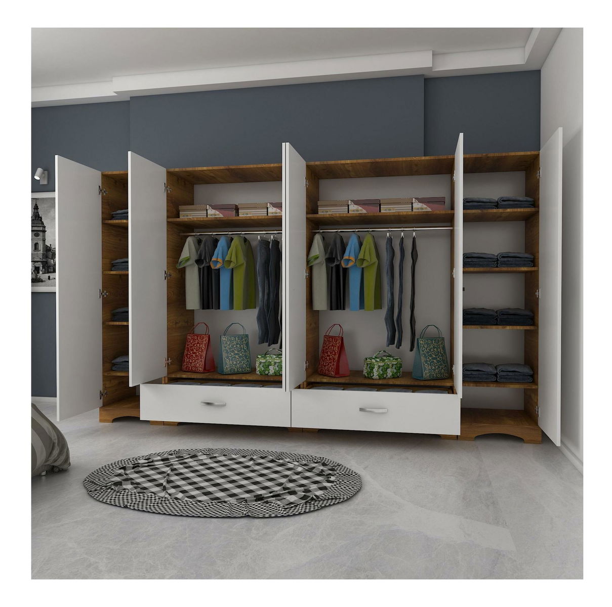 Šatní skříní Forzolena (bílá + ořech)