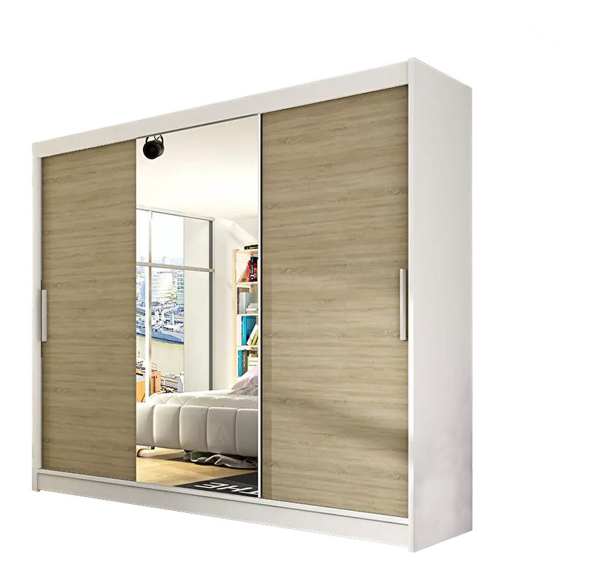 2,5 metrový model šatní skříně Alex se třemi posuvnými dveřmi je již dostupný v naší nabídce. Univerzální barvy dělají z této skříně dokonalý dekorační prvek každého interiéru. Jednoduché a velké zrcadlo opticky zvětší celou místnost a umožní dokonalé přirozené prosvícení místnosti. Vyrobeno z nejkvalitnějších materiálů. Hliníková vodítka, kvalitní ložiska, jsou umístěna ve spodní i horní části dveří, což zajišťuje jednoduchou plynulost otevírání a zavírání. Uvnitř šatní skříně najdete prostor na ramínka, ale také prostorné police na oblečení, ložní textil a mnoho dalších předmětů.