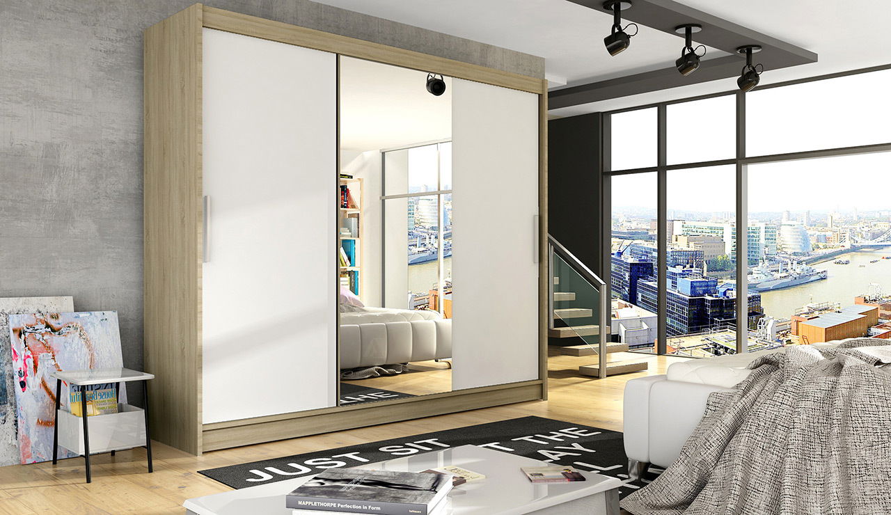 Zobrazit2,5 metrový model šatní skříně Alex se třemi posuvnými dveřmi je již dostupný v naší nabídce. Univerzální barvy dělají z této skříně dokonalý dekorační prvek každého interiéru. Jednoduché a velké zrcadlo opticky zvětší celou místnost a umožní dokonalé přirozené prosvícení místnosti. Vyrobeno z nejkvalitnějších materiálů. Hliníková vodítka, kvalitní ložiska, jsou umístěna ve spodní i horní části dveří, což zajišťuje jednoduchou plynulost otevírání a zavírání. Uvnitř šatní skříně najdete prostor na ramínka, ale také prostorné police na oblečení, ložní textil a mnoho dalších předmětů.