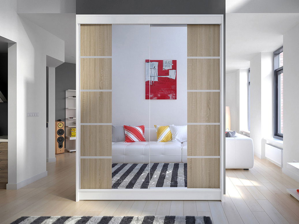 ZobrazitVnitřek této skříně je velmi prostorný tak, že do ní můžete nejen vlastní oblečení, ale i ostatní členy domácnosti. Stylová šatní skříň navzdory svým velkým rozměrům nebude výrazná v interiéru, ale právě naopak. Posuvné dveře šatníku jsou pokryty zrcadlovými panely, díky kterým se interiér místnosti zdá větší, než ve skutečnosti je. Máte rádi, když jsou kusy oblečení správně roztříděny? Bude to možné díky této prostorné šatní skříni, která je vybavena policemi různých velikostí. Na podélnou tyč můžete nasadit ramínka pro formálnější příležitosti.