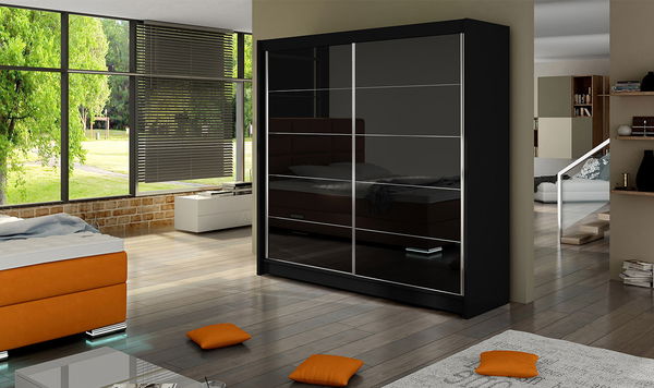 Korpus: 16 mm laminovaná deska Dělící příčky a police: 16 mm laminovaná deska PVC okraj Lesk na přední straně (lacobel sklo) Běžící systém SEVROLL MICRA (doživotní záruka) Hliníková rukojeť po celé délce přední části.