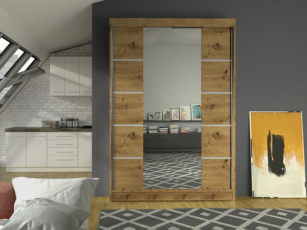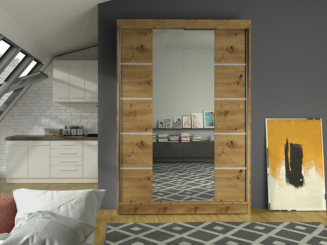 ZobrazitDvoudveřová šatní skříň se systémem posuvných dveří usnadňující každodenní používání. Moderní, funkční a elegantní. Skříň je určena pro bezpečné uložení oděvů a jiných osobních věcí. Dostupná je ve čtyřech barvách, takže jej sladíte do každého interiéru. Ideální do ložnice, obývacího pokoje nebo haly. Skříň má dlouhé vertikální zrcadlo, které jistě potěší každou ženu. Zrcadla menší místnosti navíc opticky zvětší. Standardní vnitřek šatní skříně je na jedné straně tyč a na druhé straně 3 police. Chcete vybudovat větší šatní plochu? K uložení věcí lze využít i vršek skříně.