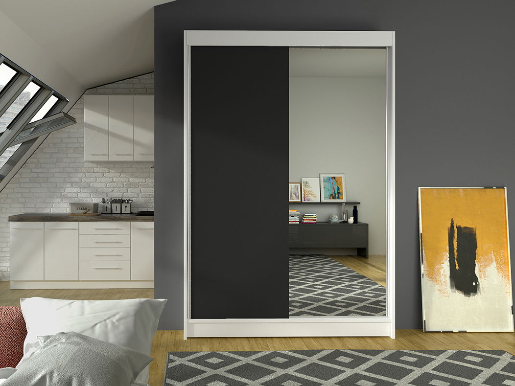 ZobrazitDvoudveřová šatní skříň se systémem posuvných dveří usnadňující každodenní používání. Moderní, funkční a elegantní. Skříň je určena pro bezpečné uložení oděvů a jiných osobních věcí. Dostupná je ve čtyřech barvách, takže jej sladíte do každého interiéru. Ideální do ložnice, obývacího pokoje nebo haly. Skříň má dlouhé vertikální zrcadlo, které jistě potěší každou ženu. Zrcadla menší místnosti navíc opticky zvětší. Standardní vnitřek šatní skříně je na jedné straně tyč a na druhé straně 3 police. Chcete vybudovat větší šatní plochu? K uložení věcí lze využít i vršek skříně.