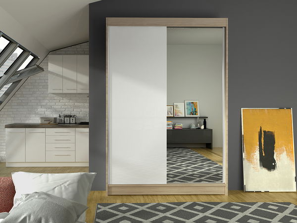 ZobrazitDvoudveřová šatní skříň se systémem posuvných dveří usnadňující každodenní používání. Moderní, funkční a elegantní. Skříň je určena pro bezpečné uložení oděvů a jiných osobních věcí. Dostupná je ve čtyřech barvách, takže jej sladíte do každého interiéru. Ideální do ložnice, obývacího pokoje nebo haly. Skříň má dlouhé vertikální zrcadlo, které jistě potěší každou ženu. Zrcadla menší místnosti navíc opticky zvětší. Standardní vnitřek šatní skříně je na jedné straně tyč a na druhé straně 3 police. Chcete vybudovat větší šatní plochu? K uložení věcí lze využít i vršek skříně.