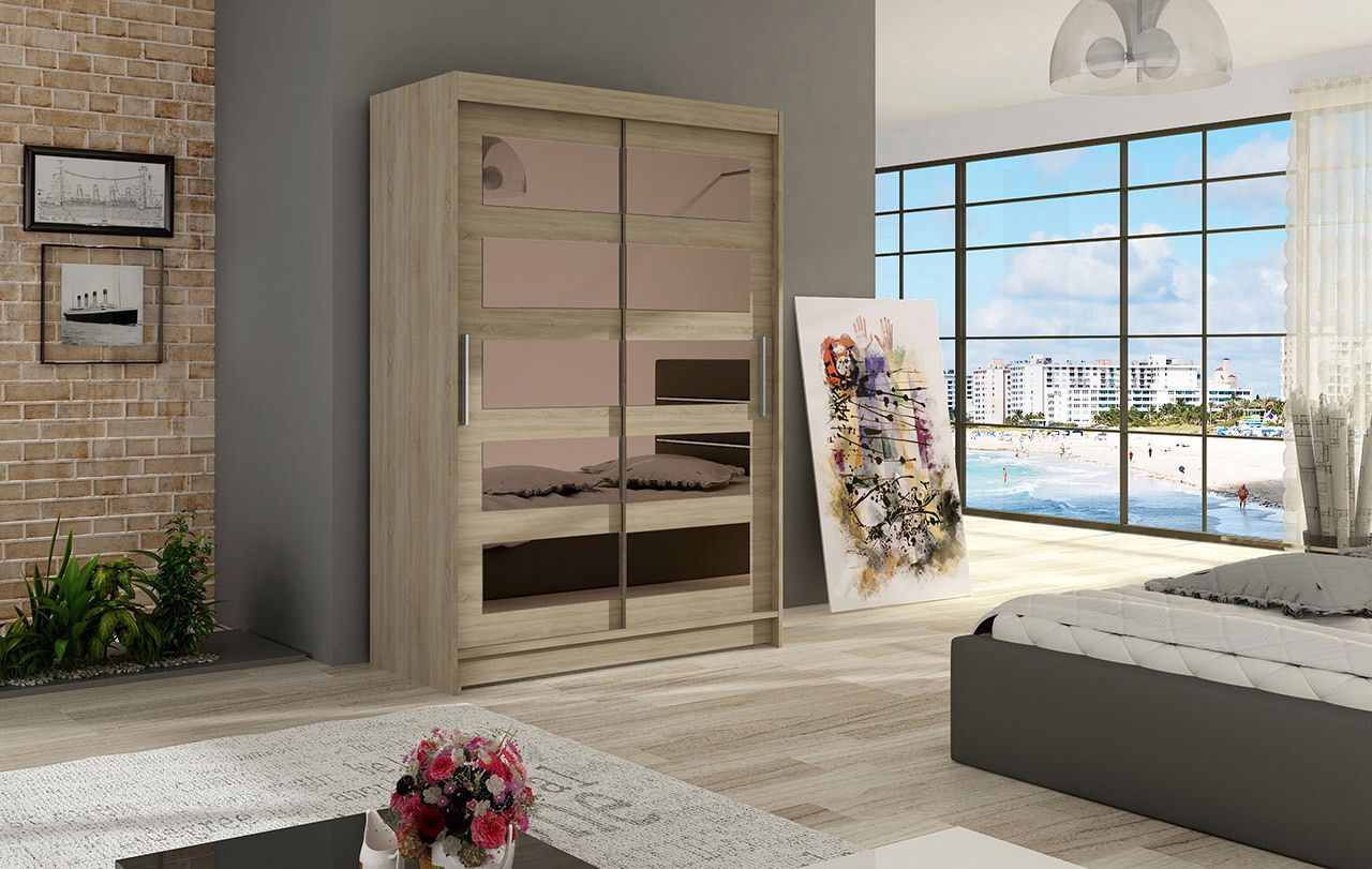 ZobrazitŠatní skříň Margit je moderní kus nábytku ideální do ložnice nebo obývacího pokoje. Dokonale poslouží iv pokoji pro mládež. Kombinace barevného provedení umožňuje snadné přizpůsobení každému typu interiéru. Díky jednoduchému vzoru se šatní skříň bude hodit do klasického i moderního interiéru. Může se stát i dekorativním prvkem vybrané místnosti. Je to dokonalé řešení pro každého, kdo oceňuje praktická řešení interiéru. Ukládání věcí nebylo nikdy tak jednoduché. Vyberte si posuvnou skříň z řady Margit a přesvědčte se sami.