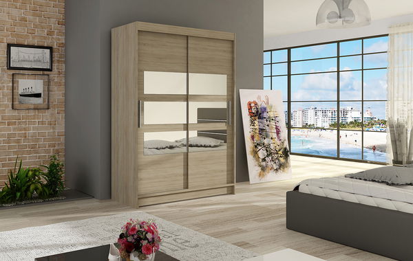 ZobrazitŠatní skříň Margit je moderní kus nábytku ideální do ložnice nebo obývacího pokoje. Dokonale poslouží iv pokoji pro mládež. Kombinace barevného provedení umožňuje snadné přizpůsobení každému typu interiéru. Díky jednoduchému vzoru se šatní skříň bude hodit do klasického i moderního interiéru. Může se stát i dekorativním prvkem vybrané místnosti. Je to dokonalé řešení pro každého, kdo oceňuje praktická řešení interiéru. Ukládání věcí nebylo nikdy tak jednoduché. Vyberte si posuvnou skříň z řady Margit a přesvědčte se sami.