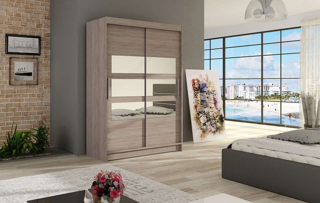 Šatní skříň Margit je moderní kus nábytku ideální do ložnice nebo obývacího pokoje. Dokonale poslouží iv pokoji pro mládež. Kombinace barevného provedení umožňuje snadné přizpůsobení každému typu interiéru. Díky jednoduchému vzoru se šatní skříň bude hodit do klasického i moderního interiéru. Může se stát i dekorativním prvkem vybrané místnosti. Je to dokonalé řešení pro každého, kdo oceňuje praktická řešení interiéru. Ukládání věcí nebylo nikdy tak jednoduché. Vyberte si posuvnou skříň z řady Margit a přesvědčte se sami.